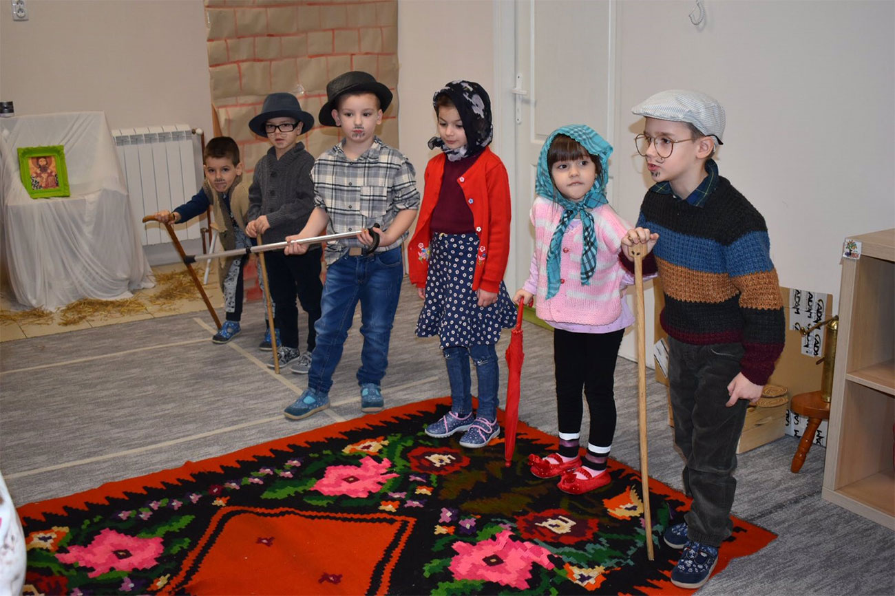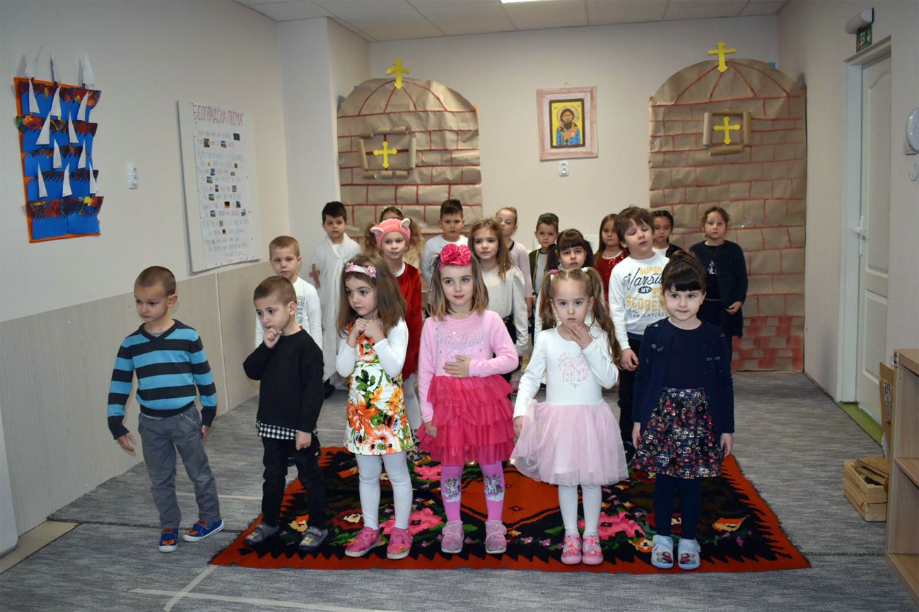Decembar mesec u našem vrtiću uvek odiše posebnom energijom i predprazničnom atmosferom. U susret praznicima koji predstoje, bogatsvo dešavanja je veliko, a euforija samo raste. U okviru ustanove vaspitači sa svojom decom organizovali su radionicu na kojoj su deca pravila novogodišnje ukrase za jelku kao i mesila medenjake a potom ih i dekorisala glazurom. Takođe smo organizovali priredbu na kojoj su deca plesala, pevala i glumila. Novu godinu smo dočekali maskirani u heroje našeg detinjstva. Božićne praznike smo obeležili u duhu naše tradicije, paljenjem Badnjaka, pevanjem pesama, pripremanjem česnice i svečanog ručka. Svetosavsku priredbu smo otvorili pevanjem himne Svetom Savi, recitacijom i glumom. Deca su odigrala dve predstave, Razgovor u crkvi i Sveti Sava i siromah seljak.